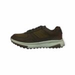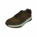 Deportiu pla combinat de pell, amb cordons. Color marró